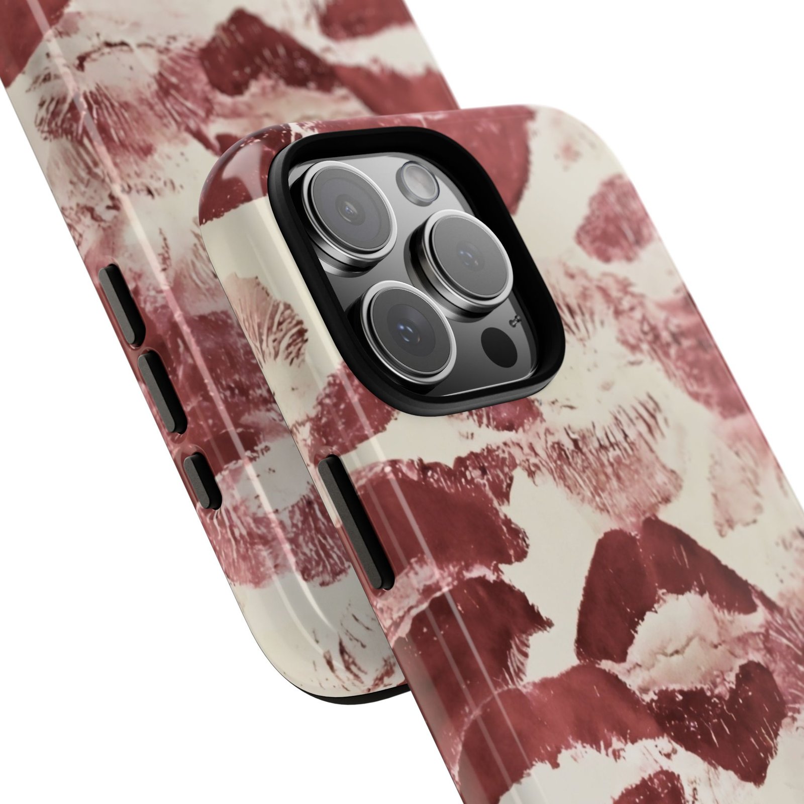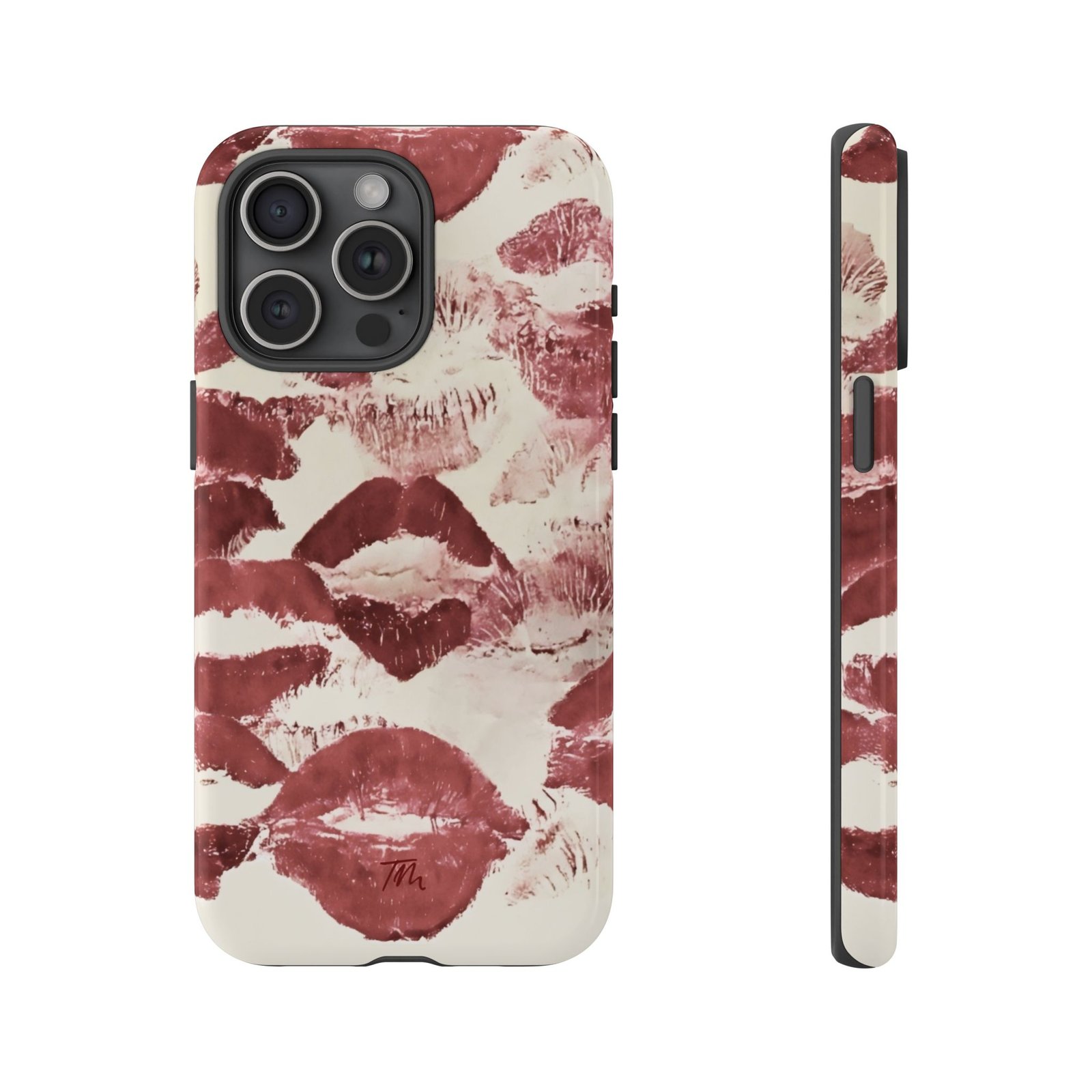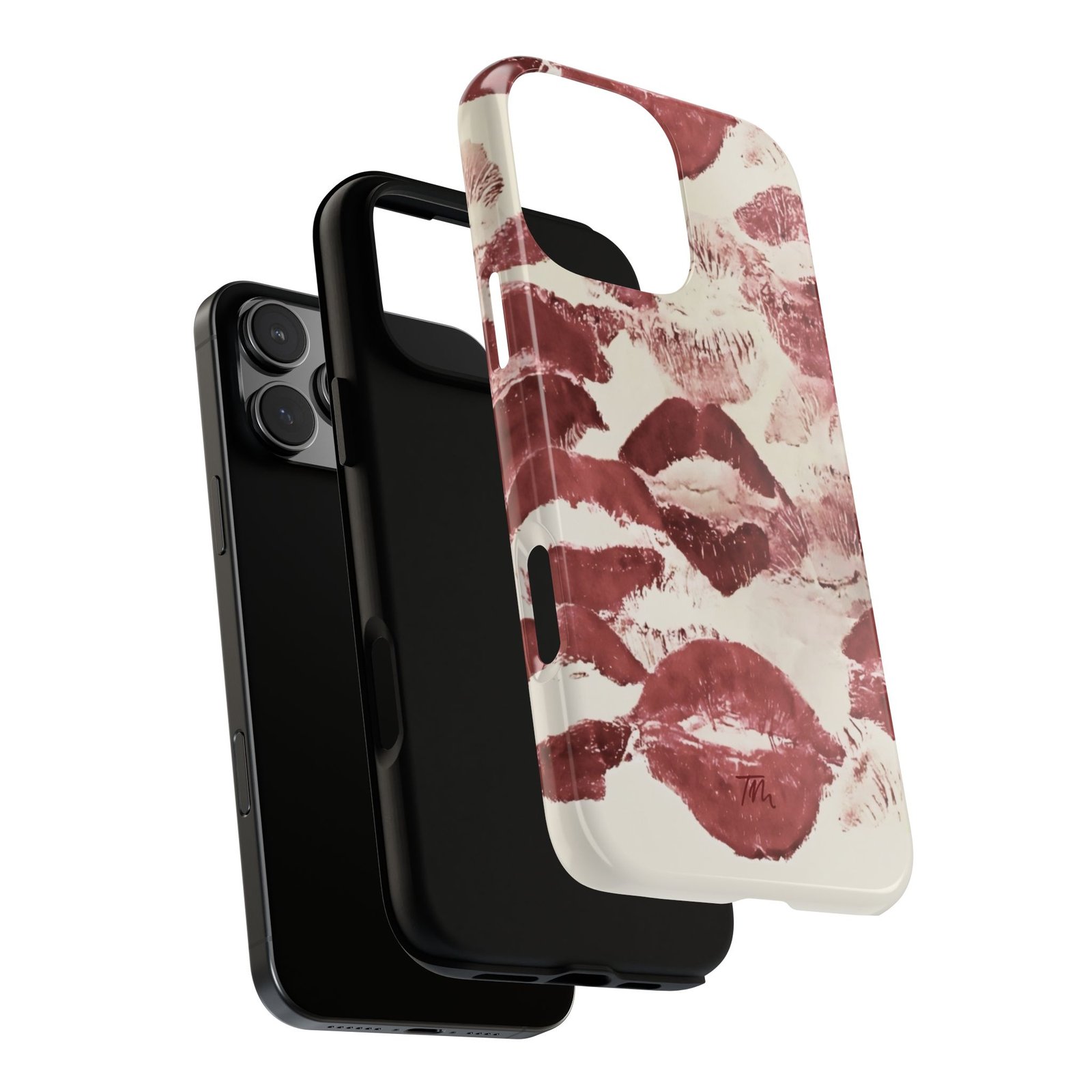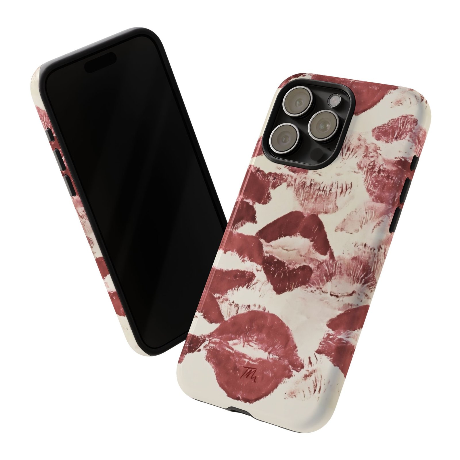 Chic Red Lipstick Print Phone Case, Cute Phone Cover, Trendy Gift, Vintage Romantic Aesthetic Accessory, Unique Style